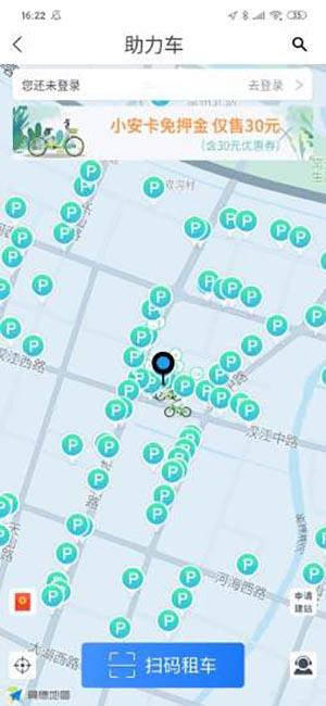 第一个骑行标签中有扫码租车功能,周边公共自行车站点信息和自助服务;
