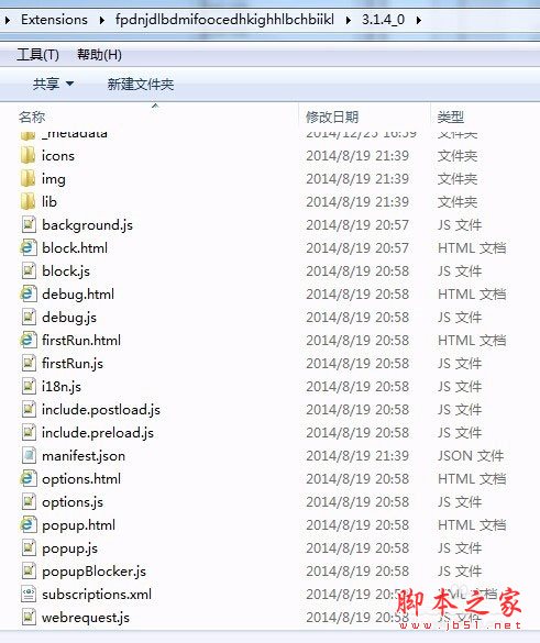 该扩展程序的根目录就是刚才找到的Chrome的Extensions目录下的该扩展ID目录下的,以版本号为名的文件夹。比如这个ID的就是3.1.4_0。