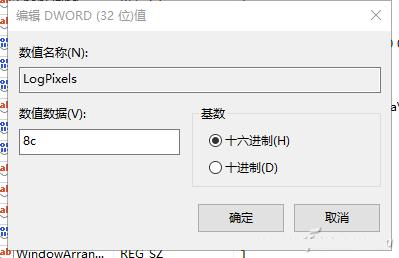 接下来继续在右边找LogPixels键值(如果没有就新建一个“DWORD(32位)值”,命名为LogPixels),将LogPixels修改为所需放大的百分比数值,此时需要注意十六进制与十进制的转换,在注册表中填写的为十六进制,而最终显示的结果系统会转为十进制。