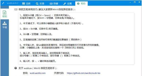 在帮助页面收集整理了大量微软五笔常用快捷键、用法帮助。