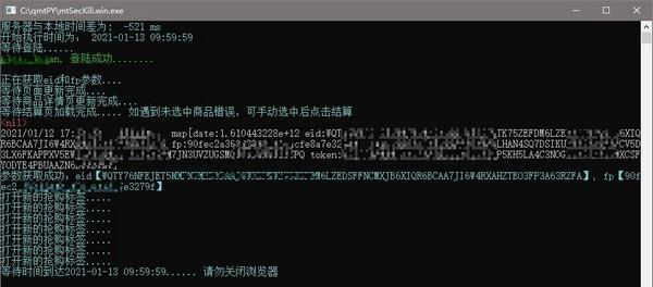 mtSecKill -sku=100012043978 -num=2 -works=6 -time=09:59:59 运行参数 均有默认可以不加