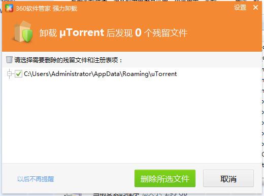 3、还是无法卸载的话,那么你肯定是下载的uTorrent绿色版,这个是不需要安装的,所以在360软件管家和控制面板内都找不到卸载程序!大家只需找到下载目录,直接整个文件夹删除即可