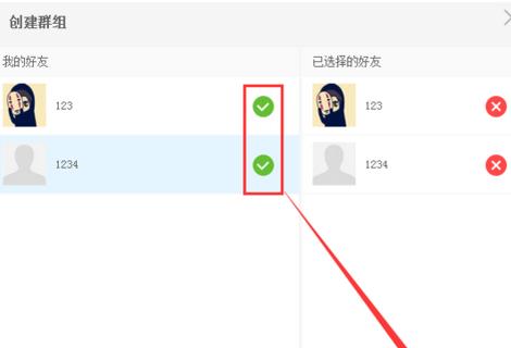 点击创建群组之后,就会弹出如图所示的创建群组选项框,我们点击选择想要拉进来的好友,选择完毕之后,我们再点击“立即创建”