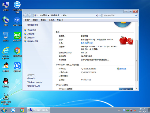 番茄花园系统Ghost Win7 SP1 64位旗舰装机版 v2021.09