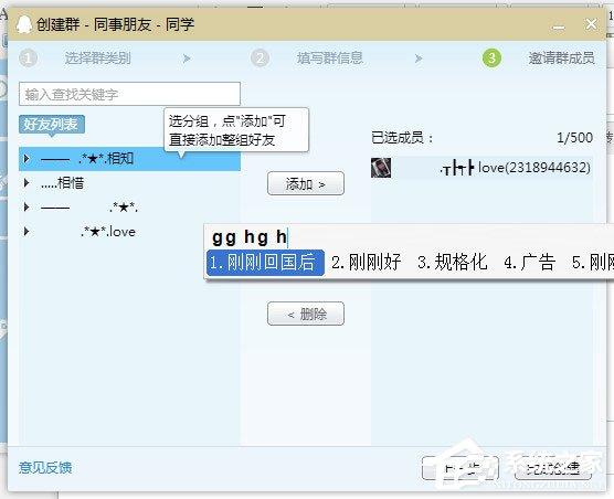 4、接上一步,在你的好友列表里边,将需要的人直接邀请进群,或者不邀请列表里的人,直接点击“完成创建”;