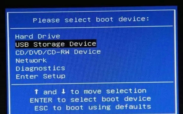 使用向上、向下键选择启动方式,如果开机前插好了U盘,这里就会出现你的U盘的名称,选中它,按enter键,即完成从U盘启动的设置。