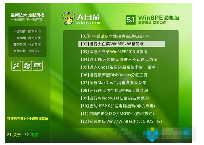 步骤三:接着从U盘启动进入到这个菜单,通过方向键选择【02】选项回车,启动PE系统,当无法进入则选择【03】旧版PE系统。