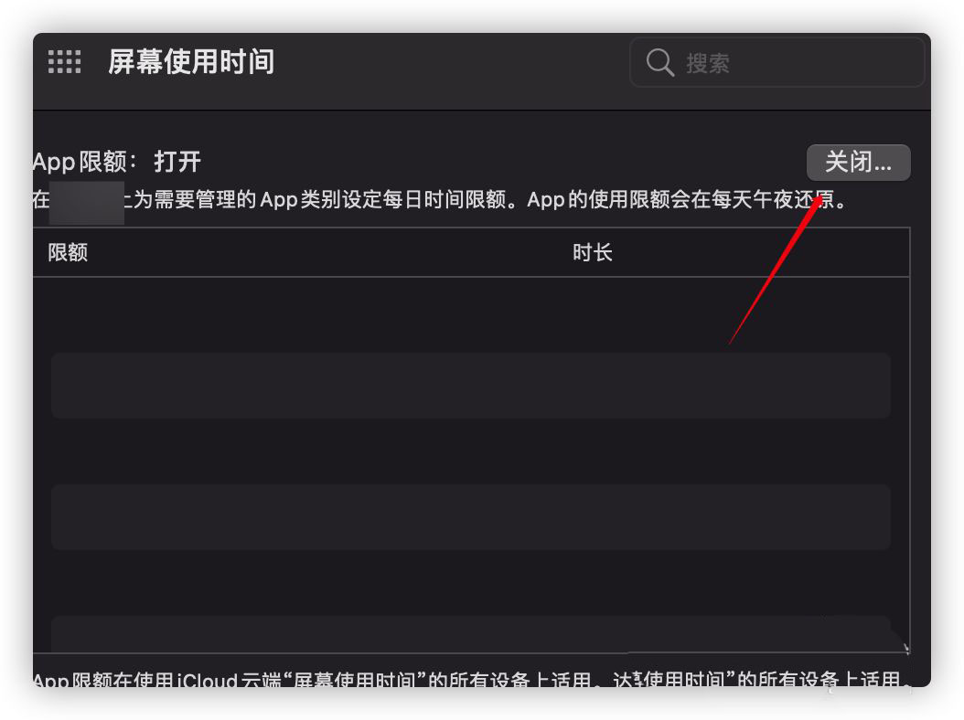 然后在右侧的面板中可以看到App限额当前是关闭的状态,点击按钮打开。