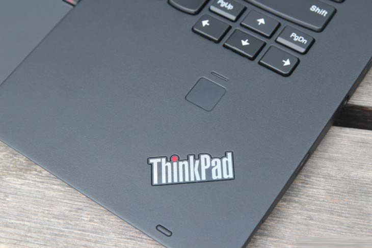 ThinkPad X1 Yoga与上代相同,也采用了触摸式指纹识别模块,解锁速度很快,使用起来十分方便。在右下角的位置有着与机身A面同样设计的标志,很是显眼。