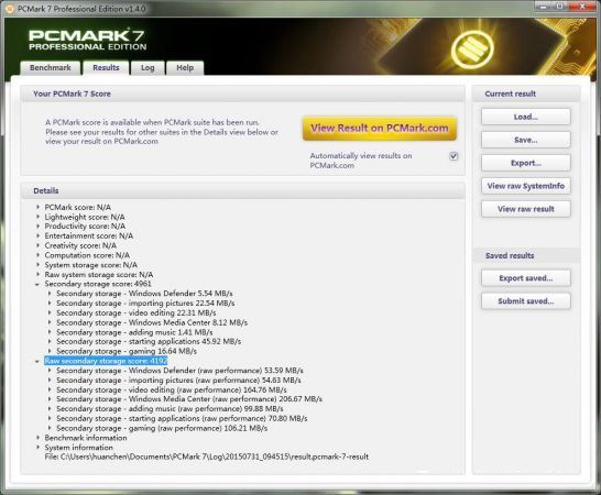 PCMark7软件测试后的得分,也是要比8扇区对齐时的分数高一些,但低于2048扇区对齐时的分数。