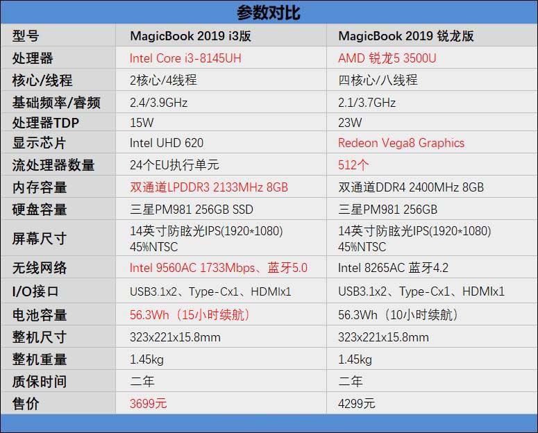 MagicBook2019酷睿版和锐龙版哪款好 酷睿版和锐龙版对比评测